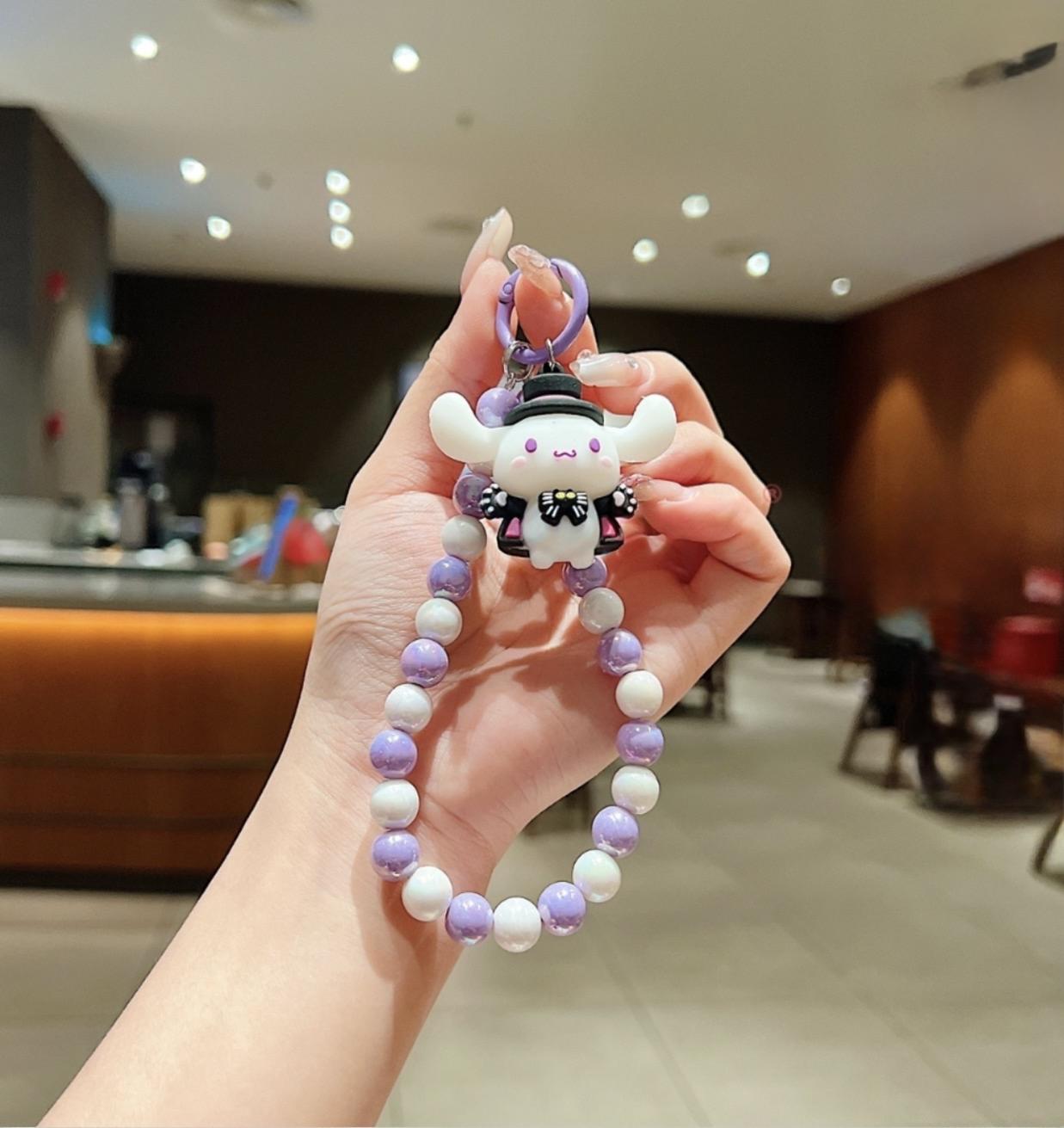 Cinnamoroll phone charm with Beaded Strap – Sanrio Kawaii Charm Bag Accessory (Purple & White)