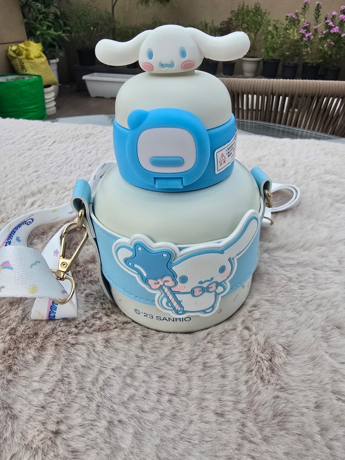 Cinnamoroll Water Bottle with Strap โ Sanrio Kawaii Blue Drink Bottle with Cover & Handle