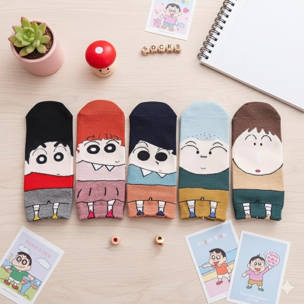 Crayon Shinchan Anime Crew Socks - Action Kamen Design - Soft Cotton - Unisex Adult One Size