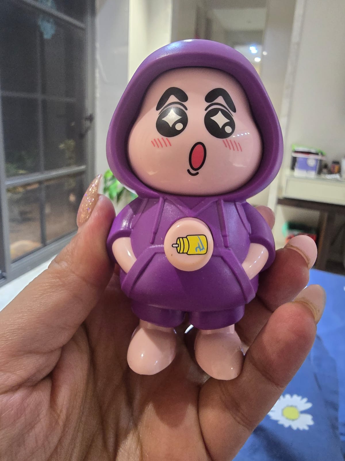 Face Changing Shinchan Cartoon Figurine – Cute Purple Hoodie Toy Collectible for Kids & Fans 🎁