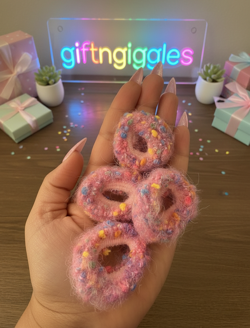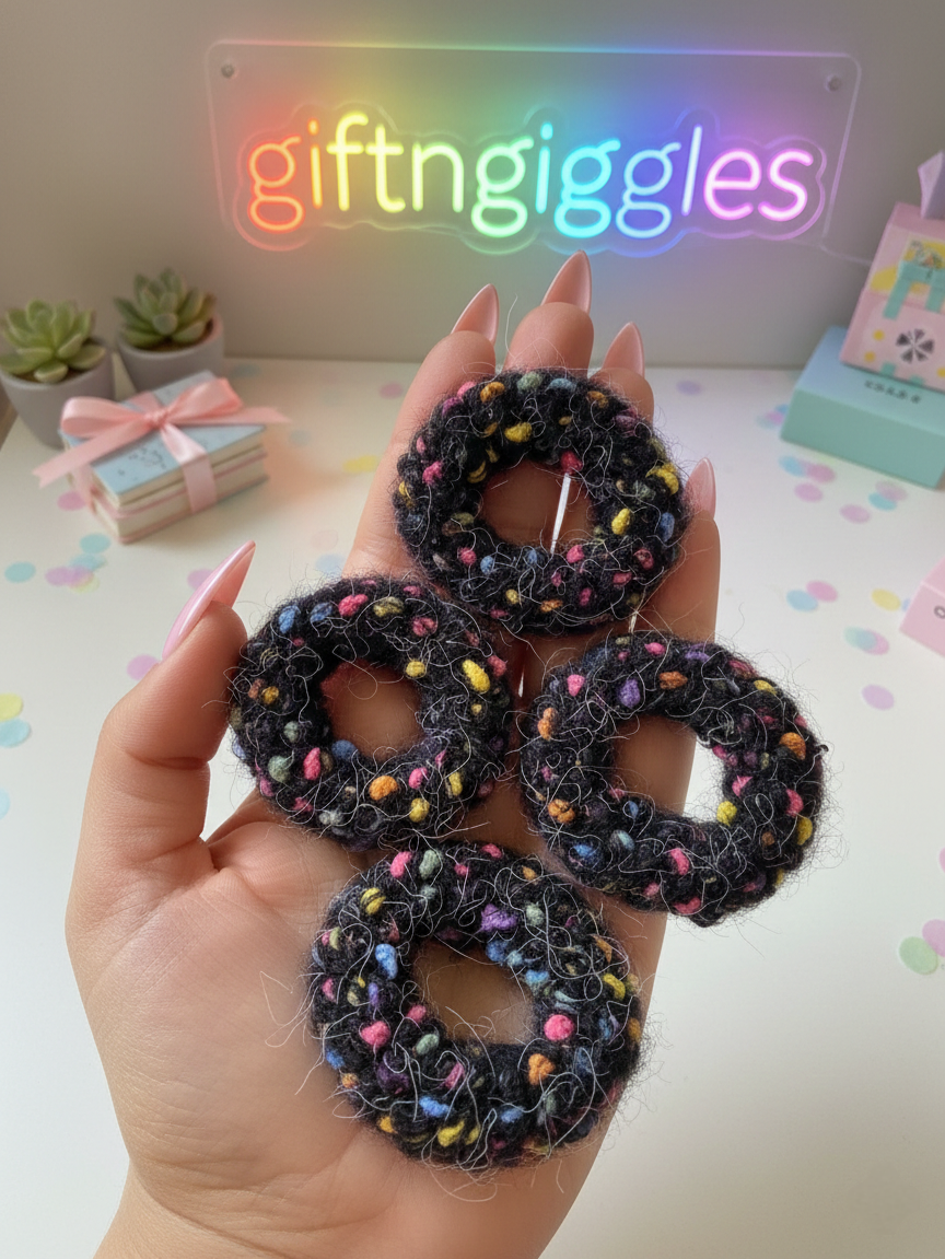 Adorable Fuzzy Scrunchies - Kawaii Hair Magic! ✨🍩Elevate your ponytail game with these handmade fuzzy scrunchies! 🌈 Soft, plush wool... Read more