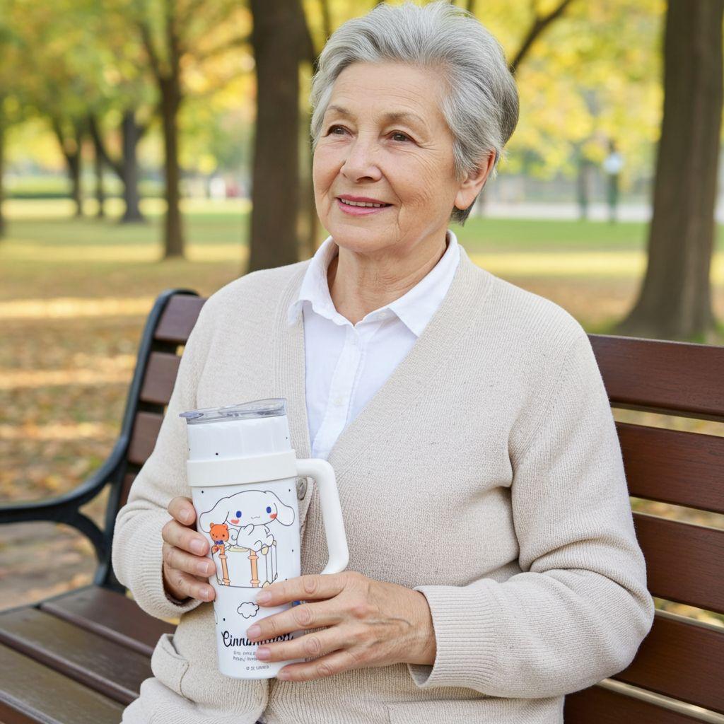 Cinnamoroll Tumbler with Handle – Sanrio Travel Mug with Lid (White)