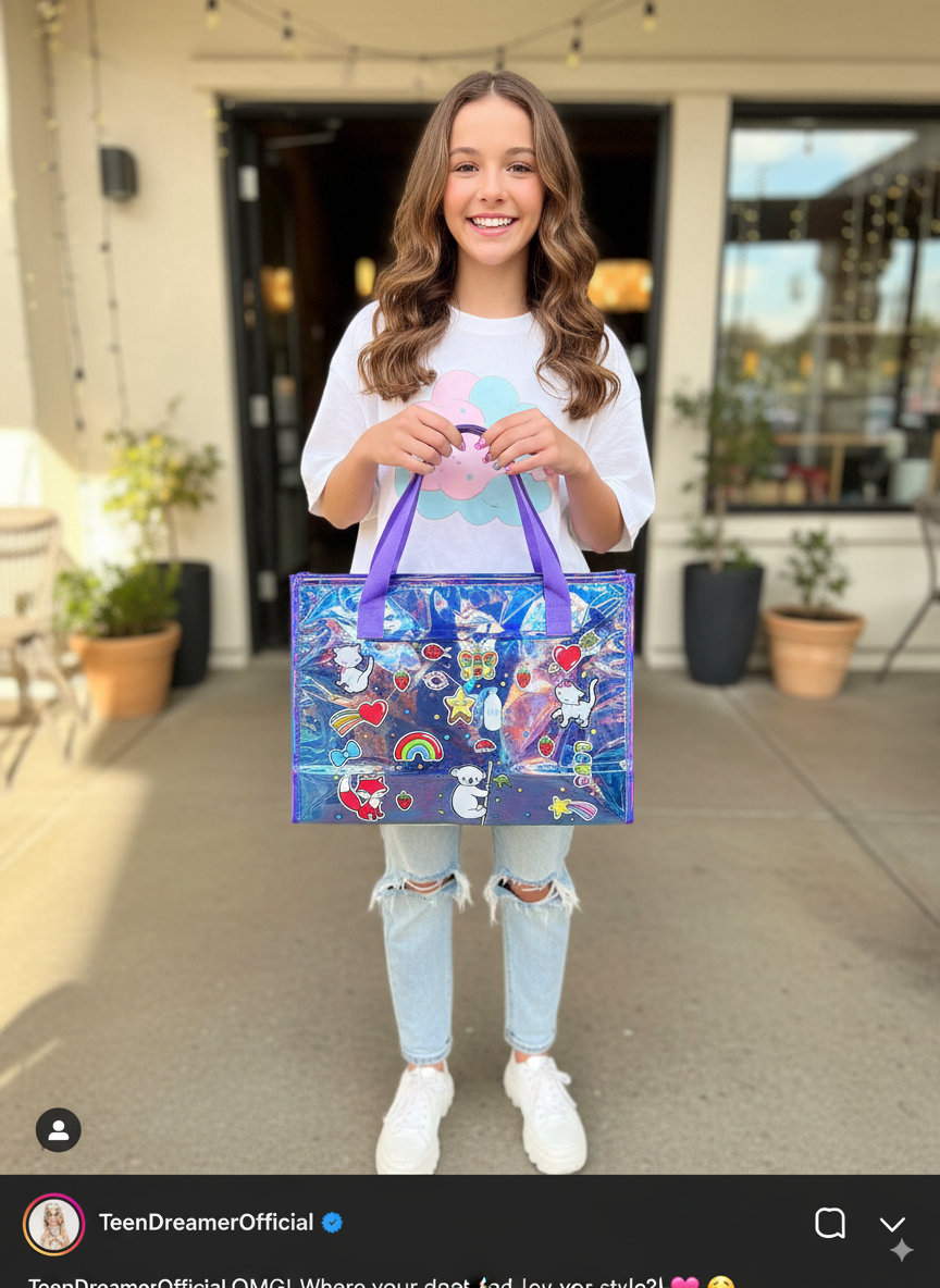 Make your feed sparkle with this adorable holographic tote bag! ✨ Featuring an eye-catching iridescent blue finish and decorated with... Read more
