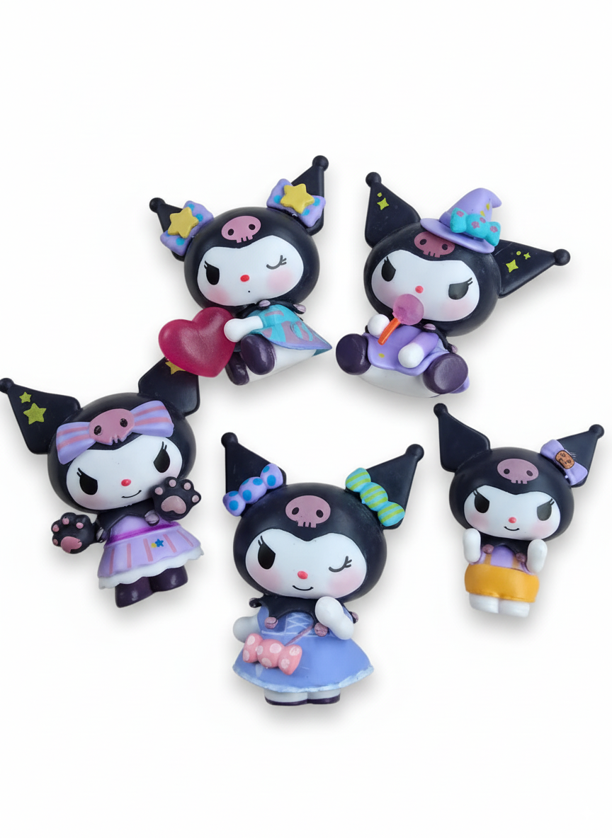 This photo features an enchanting set of five Kuromi figurines, each styled with adorable pastel outfits and playful accessories for... Read more