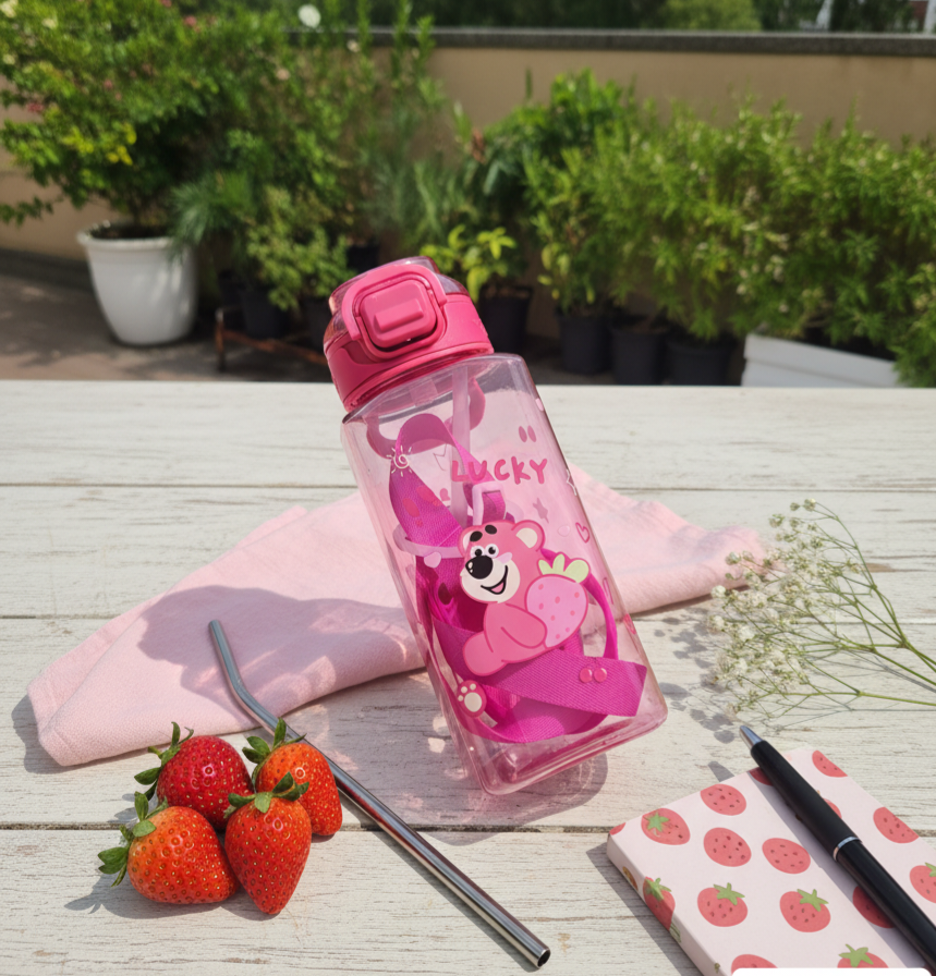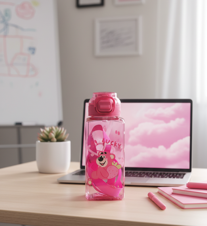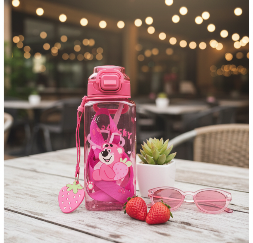 This adorable pink water bottle features a cheerful strawberry bear design and is perfect for kawaii lovers of all ages🍓🧸.... Read more