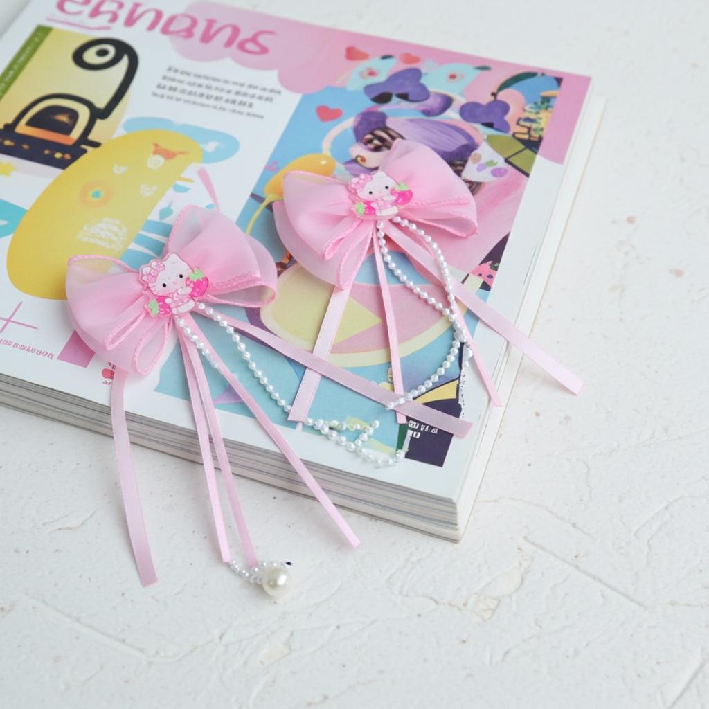 Hello Kitty Pink Bow Hair Clips with Pearls – Cute Ribbon Barrettes for Girls & Women (Set of 2)