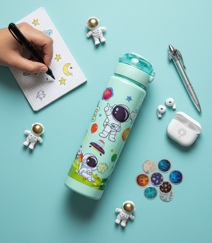 This adorable space-themed water bottle brings an out-of-this-world charm to every sip ππ. Featuring vibrant graphics of astronauts, planets, rainbows,... Read more